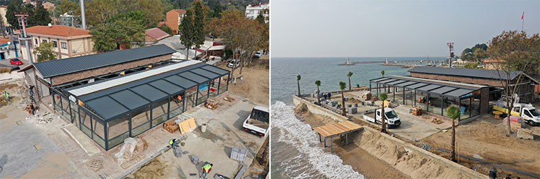 Darıca sahil parkının giriş kısmına Büyükşehir Belediyesi’nce inşa edilen ve yakın zamanda hizmet vermeye başlayacak olan modern restoran, sahil parkına gelen vatandaşların ihtiyaçlarına cevap verecek
