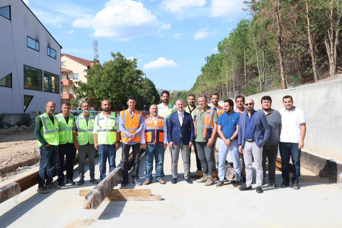 Alikahya Tramvay Hattı’nda raylar döşenirken Başkan Büyükakın, ulaşımda büyük dönüşümün devam ettiği projenin geldiği son durumu yerinde gördü