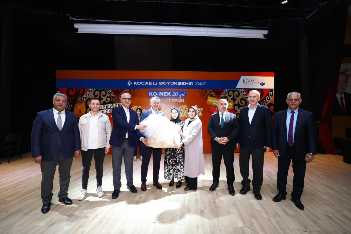 Kocaeli Büyükşehir Belediyesi Meslek ve Sanat Eğitim Kursları (KO-MEK), “Orta Asya’dan Anadolu’ya Ortak Mirasımız” temalı sergilerinin açılışına devam ediyor. Kocaeli Büyükşehir Belediye Başkanı Doç.Dr.Tahir Büyükakın, Adnan Menderes Kültür Merkezi’ndeki KO-MEK’in Darıca ilçe sergisine de katıldı. Kursiyerlerin bir yıl boyunca ürettiği el emeği göz nuru ürünlerin vatandaşlarla buluştuğu sergide birbirinden güzel ürünler göz kamaştırdı. Eşsiz eserlerin yer aldığı sergide ürünleri tek tek inceleyen Başkan Büyükakın, KO-MEK’in verdiği hizmetlere vurgu yaptı.