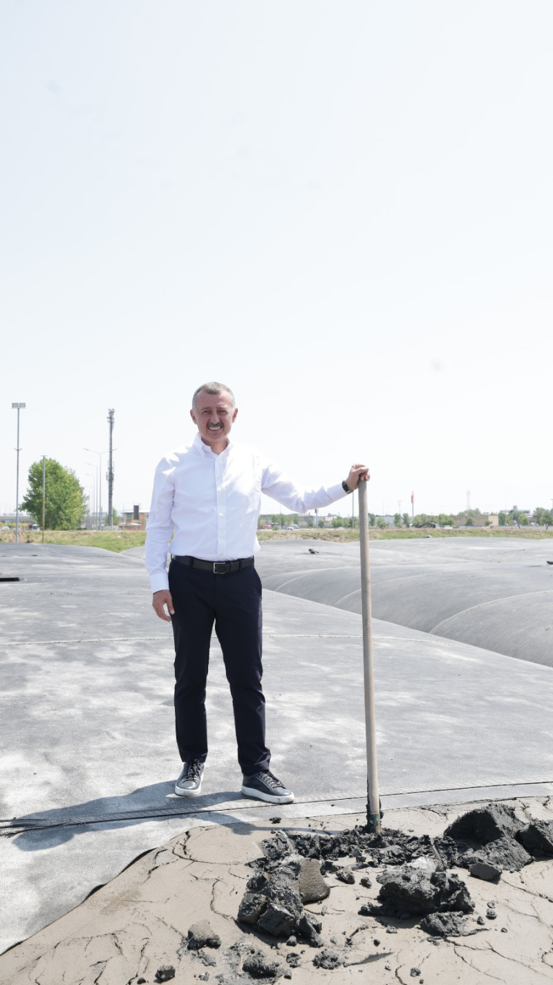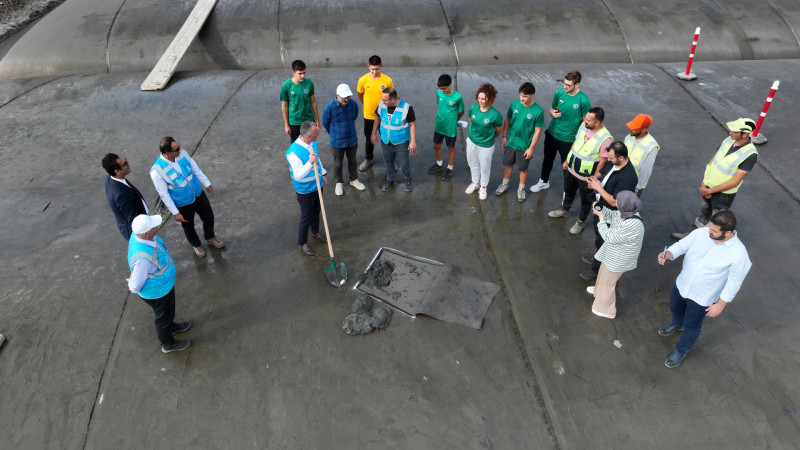 Konuşmaların ardından toplu fotoğraf çekimi gerçekleştirildi. Başkan Büyükakın, katılımcılarla birlikte Dip çamuru dolumu yapılan çuvallar üzerine çıkarak yeterli kuruluğa ulaşmış çuvalı kesti.