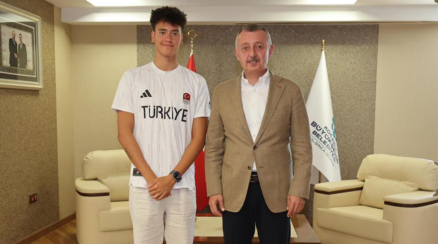 Tahir Büyükakın, Slovakya'nın Samorin kentinde düzenlenen Avrupa Gençler Yüzme Şampiyonası’nda altın madalya kazanan İzmitli 17 yaşındaki milli sporcu Kuzey Tunçelli’yi tebrik etti