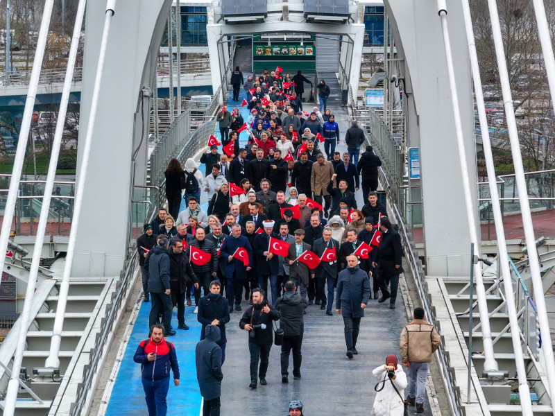 ELLERDE TÜRK BAYRAKLARI İLE YÜRÜYÜŞ