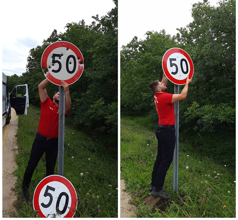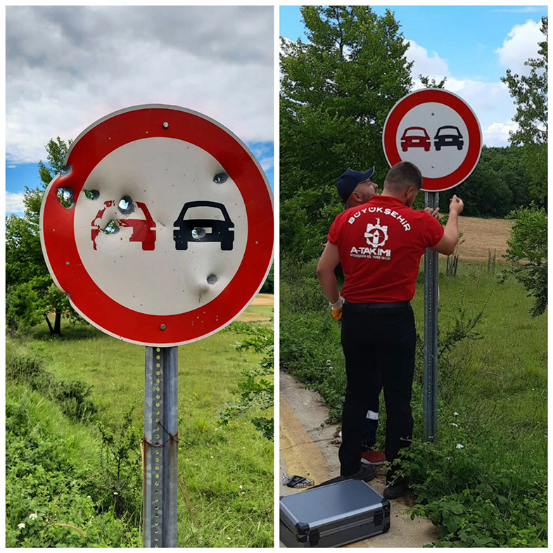 A Takımı ekipleri, kırsal mahallelerde zamanla yıpranan yön ve trafik levhalarını sürücülerin sürüş güvenliğini artırmak amacıyla yeniliyor, bakım ve onarımını gerçekleştiriyor. Ekipler, daha önce de bazı kişilerin silah talimi yaparak delik deşik ettiği kırsal bölgelerdeki yön ve trafik levhalarını yenilemişti.