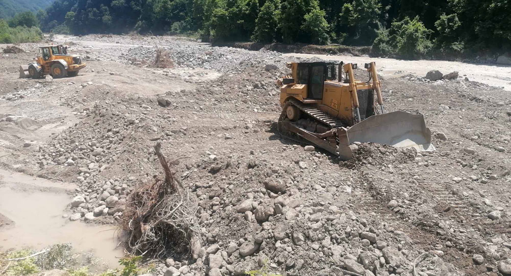 Uğursuyu deresinde yaşanan sel taşkınının getirdiği birikintiyi dozerle temizleyen Fen İşleri Daire Başkanlığı ekipleri, köylere ulaşımın sağlandığı yolun açılması için dere yatağı temizleme ve yol yapım çalışması yapıyor. Büyükşehir Yol Bakım Timi bölgede bir haftadır çalışmalara katılıyor. Düzce’de ekipler, 1 tır, 1 dozer ve 4 personelle yol açma, yol genişletme dere yatağı genişletme çalışmaları yapıyor.