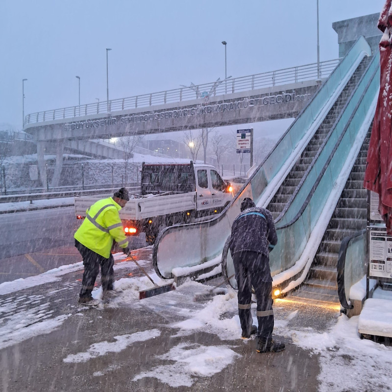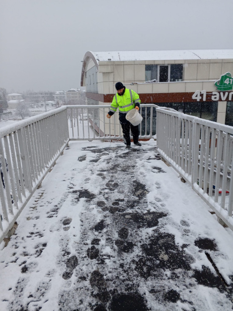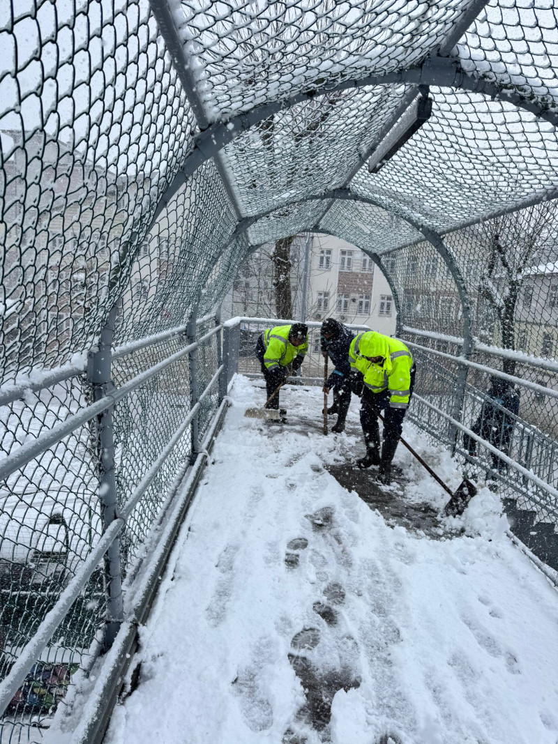 Büyükşehir ekipleri; acil servis girişleri, aile sağlığı merkezleri, köprüler, camiler, otogarlar, otobüs durakları, kamu binalarının önü, üst geçitler ve viyadüklerde oluşan kar birikintilerini temizleyerek ulaşımın güvenliğini sağlıyor. Ayrıca üst geçitlerin merdivenlerinde biriken karın gece ayaz yapmasıyla oluşan buzlanmalar, buz çözücü solüsyon dökülerek temizleniyor.