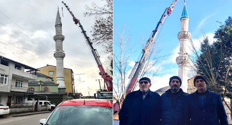 Büyükşehir, zamanla yıpranan ve koparak devrilme tehlikesi oluşturan İzmit 28 Haziran Mahallesi’ndeki Elmalık Camii’nin minare külahını yeniledi