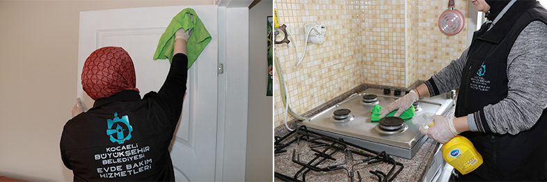 Büyükşehir Belediyesi yıl boyunca sunduğu Evde Bakım hizmetinde ev temizliği ve öz bakım hizmeti yer alıyor. Başvurusu alınan vatandaşın evine sosyal incelemeye gidiliyor. Gerekli şartların oluştuğu tespit edilen kişiler hakkında kurulca kararlar alınarak (vatandaş SMS ile bilgilendirilmekte) ekipler tarafından periyodik olarak hizmet veriliyor. Bu hizmetten yararlanabilmek için Kocaeli Büyükşehir Belediyesi 153 Çağrı merkezi ile irtibata geçiliyor.