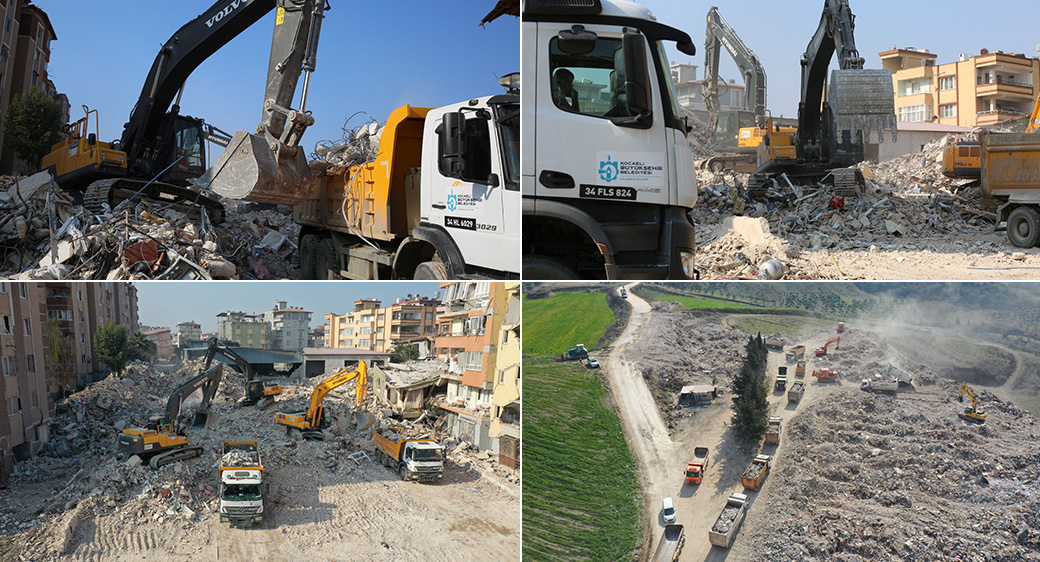 Kocaeli Büyükşehir, Hatay Defne’de çadır kent, hastane ve konteyner kent kurulumunun yanı sıra enkaz kaldırma çalışmalarına da katılıyor