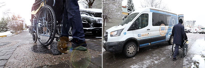 Engelli ve Yaşlı Hizmetleri Şube Müdürlüğünce tüm Kocaeli’de hizmet veren ve randevu sitemi ile çalışan “Engelsiz Taksi”, tekerlekli sandalyede olan vatandaşlara hizmet veriyor. Engelli vatandaşlar istedikleri yerden alınarak gidecekleri yere kadar ulaştırılıyor.