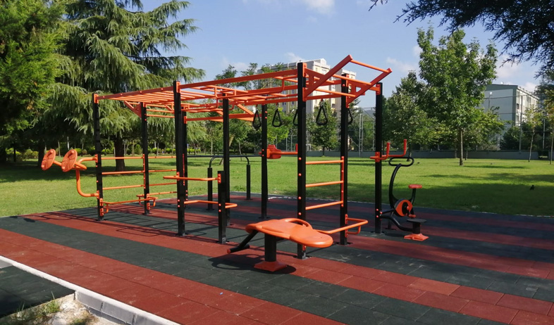 Kocaeli Büyükşehir Belediyesi İzmit Yahya kaptan yürüyüş yolundaki eskiyen spor aletleri yerine yeni workout spor istasyonu kurdu