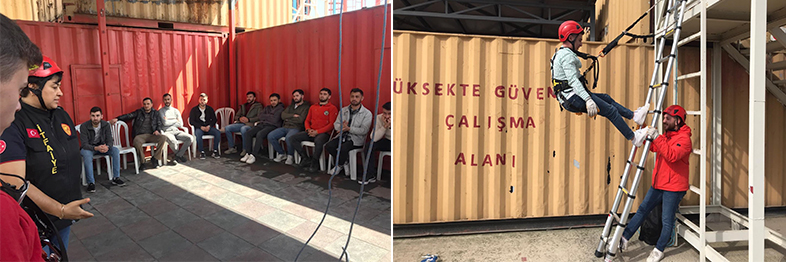 Teorik ve pratik olmak üzere iki aşamalı olarak verilen eğitimde; Yüksekte Çalışma, Güvenlik Kuralları, Alan Sınırlandırma, Düşüş Durdurucular, Emniyet Sistemleri, Kişisel Korunma Donanımı, Ekipman Bilgisi, İple İniş ve Çıkış, Yatay ve Dikey Yaşam Hatları, Merdiven Kullanımı başta olmak üzere birçok konuda bilgiler sunuldu. Sanayi Mahallesi Ömer Türkçakal Bulvarı üzerinde yer alan KOBİTEM tesislerinde gerçekleştirilen eğitimin uygulamalı bölümünde; Kişisel Koruyucular, Düşüş Durdurucular, Yatay ve Dikey Yaşam Hatları, İple İniş ve Çıkış gibi konular, istasyon ve simülatörler kullanılarak aktarıldı.