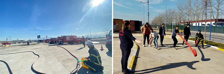 Eğitimde kişisel korunma donanımı, kapalı ve dumanlı ortamlarda ilerleme, kapalı ve dumanlı ortamlarda yön bulma ve yangın kaynağı arama, kazazede taşıma teknikleri, sedyeler, akaryakıt yangınlarında köpük uygulamaları, çok katlı yapı yangınlarında ekip organizasyonu ve söndürme stratejisi başta olmak üzere çeşitli konularda bilgiler sunuldu. KOBİTEM eğitim merkezinde yer alan simülatör ve istasyonlar ile gerçekçi yangın durumlarına karşı nasıl mücadele edilmesi gerektiği uygulamalı olarak gösterildi.