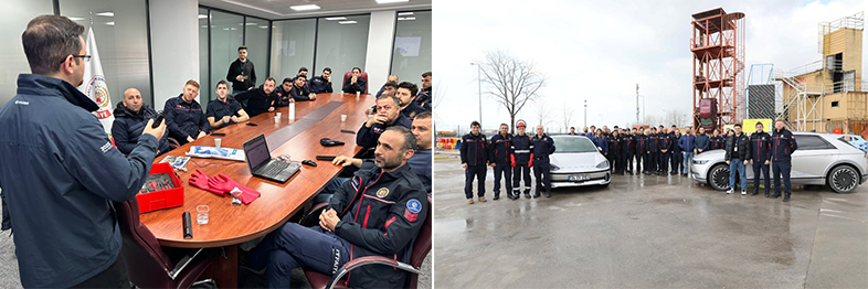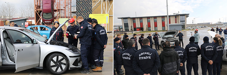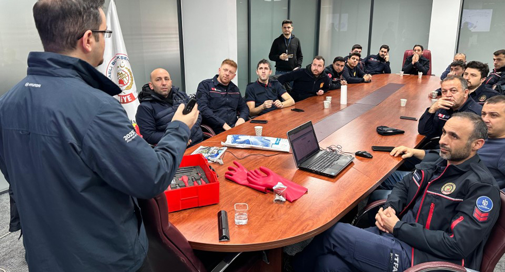 7 gün 24 saat görev yapan Büyükşehir İtfaiyesi, bu tip olaylarda müdahaleye yönelik eğitimler vermesinin yanı sıra kendi bilgi ve beceri düzeyini artırmak adına sektörün uzmanları ile işbirliği gerçekleştiriyor. Bu kapsamda Hyundai Assan San. Ve Tic. A.Ş. Kocaeli Tesisi ve İstanbul Genel Merkez’den gelen yetkililer ve uzmanlar ile Elektrikli Araç Yangınları ve Kaza Durumlarında Araç Güvenliği konulu eğitim gerçekleştirildi.
