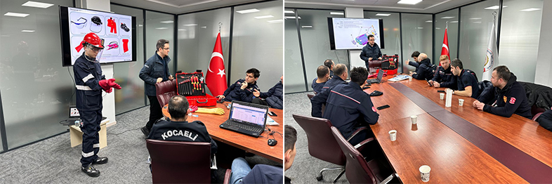 Kocaeli Büyükşehir Belediyesi İtfaiye ekipleri Elektrikli Araç Yangınları ve Kaza Durumlarında Araç Güvenliği konulu eğitim aldı