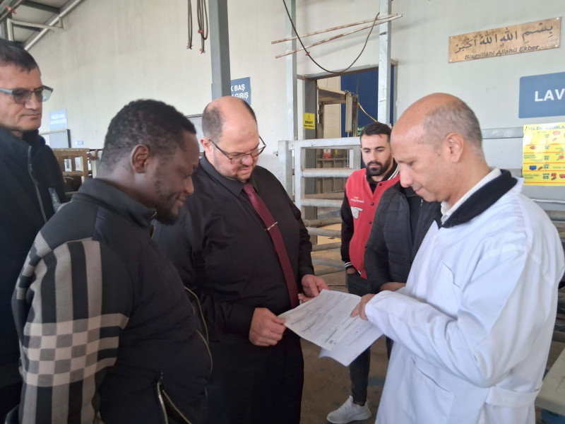 Türkiye dahil 57 İİT (İslam İşbirliği Teşkilatı) üyesi ülke için helal standartları hazırlayan SMIIC’in teknik ekibi, helal kesim süreçlerini yerinde incelemek üzere Kocaeli Büyükşehir Belediyesi’ne bağlı İzmit Merkez Mezbaha Tesisleri’nde kapsamlı bir ziyaret gerçekleştirdi. Ziyaret, SMIIC Helal Gıda Konuları Teknik Komitesi (TC1) uzmanları Dr. Awal Fusine ve Dr. Mohammed Ali Alsheikh tarafından yürütüldü. Uzmanlar; HACCP ekibinin yürüttüğü hijyen ve kalite yönetimi uygulamalarını, helal kesim prosedürlerini, canlı hayvan kabul alanlarını, kesim hattını, veteriner hekim kontrol süreçlerini ve soğuk zincir yönetimini yerinde gözlemledi. Tesisin helal standartlarının sürdürülebilirliği için yürütülen çalışmalar hakkında teknik değerlendirmeler yapıldı.