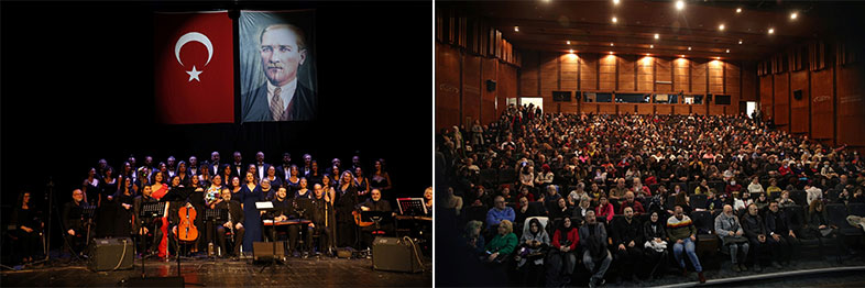 Kocaeli Büyükşehir Belediyesi Türk Sanat Müziği Korosu, tangolar ve valslardan oluşan konseri ile sanatseverlere unutulmaz bir akşam yaşattı. Şef Neşe Sarısözen Adalı yönetimindeki koro, Türk Sanat Müziğinin en sevilen eserlerini başarı ile seslendirdi.