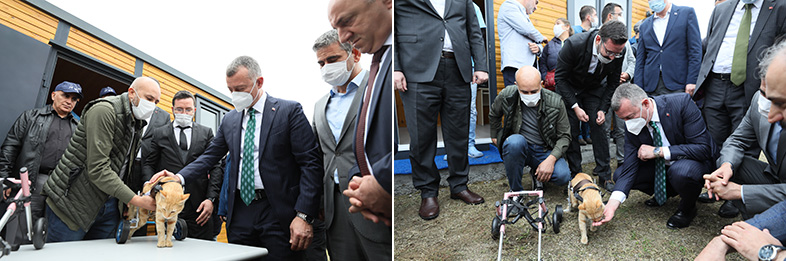 Konuşmasının ardından Başkan Büyükakın, ilçe belediye başkanları ve hayvan severler Patilik Mutlu Sokak Hayvanları Kasabası'nı gezerek incelemede bulundu. Başkan Büyükakın, geçtiğimiz hafta bir aracın altında kalan ve yürüteç takılan bir kediyi severek elleriyle mama yedirdi.