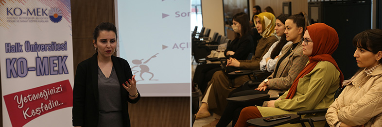Kocaeli Büyükşehir Belediyesi Meslek ve Sanat Eğitim Kursları (KO-MEK) eğitim desteği vermeye devam ediyor. KO-MEK bu kez de İnsan Kaynakları ve Eğitim Dairesi Başkanlığı işbirliği ile Kadın ve Aile Hizmetleri Şube Müdürlüğünde görev yapmakta olan personele “Sunum Teknikleri, Hitabet ve Sunum Becerileri ile Diksiyon” eğitimi verdi. Kocaeli Kongre Merkezi Selim Sırrı Paşa Salonunda gerçekleştirilen eğitimin uygulamalı bölümlerinde katılımcılar hem eğlendi hem de yeni bir şeyler öğrenmenin tadını çıkardı.