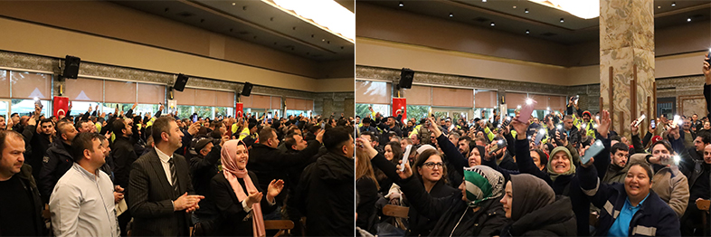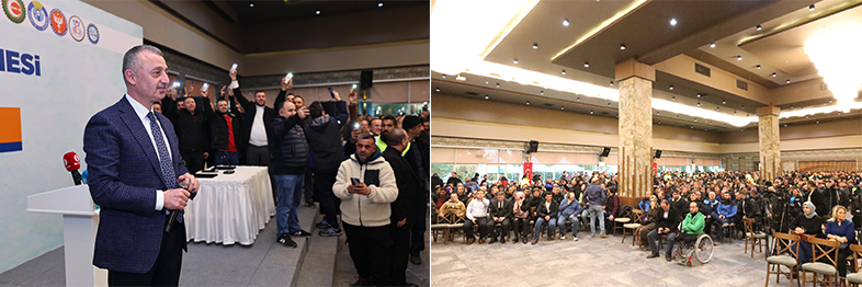 Sözlerine devam eden Büyükakın, “Peygamberimiz ‘İşçinin alnının teri kurumadan hakkını verin’ diyor. Sizi ötekiler olarak hiç görmedik. Beraber yürüdüğümüz yol arkadaşlarımız olarak gördük. İmkânlarımızı sonuna kadar zorlayalım dedik. Türkiye’nin en iyi anlaşmalarını yaptık. Yüzü gülen işçi vatandaşa hizmet ederken de onları mutlu eder. Sizi enflasyona ezdirmeyen, elimizdeki imkânların en iyi olacak şekilde düzenleme yaptık” şeklinde konuştu.