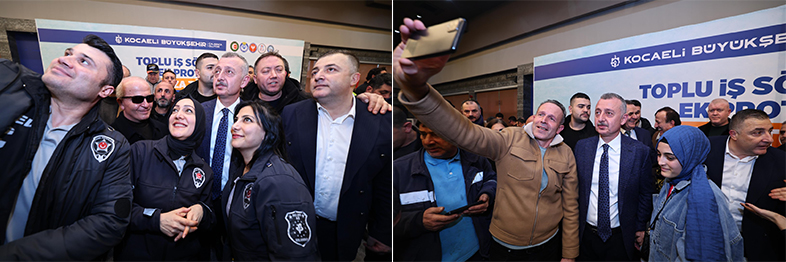 Hizmet-İş Kocaeli Şube Başkanı Muharrem Subaşı da “Burada olmamızın sebebi işçi arkadaşlarımızın gelecekte daha iyi yaşamaları içindir. İmzaladığımız ek protokolün anlamı büyüktür. Bu sonuca ulaşmamızda başta başkanımız Tahir Büyükakın olmak üzere emeği geçenlere ve emekçi arkadaşlarıma teşekkür ediyorum. Ek protokolümüzün bir anlamı da uzlaşma kültürünün sadece sözden ibaret olmadığını, karşılıklı adımlar atarak aynı noktada buluştuğumuzun göstergesi olmasıdır. Hem işveren hem de sendika olarak bu birlikteliğimizi ortaya koymuş bulunmaktayız. Bu sözleşmenin daha güzel protokollere emsal teşkil etmesiniz arzu ediyorum. Kentimiz için hayırlı, uğurlu olmasını temenni ediyorum. İyi ki varsın Tahir başkanım diyorum” diye konuştu.