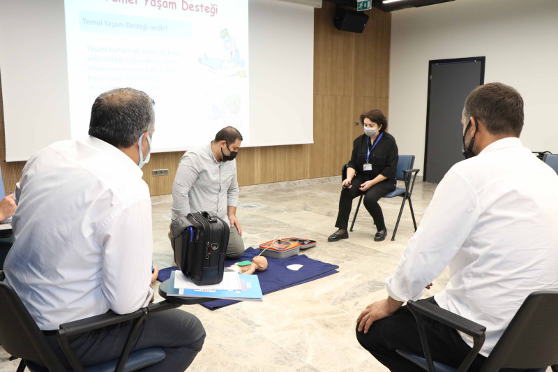 Sağlık ve Sosyal Hizmetler Dairesi Başkanlığı Sağlık İşleri Şube Müdürlüğü’ne bağlı hemşireler tarafından gerçekleşen eğitimlerde; “Temel Yaşam Desteği”, “Tam Tıkanmalar” (Solunumum tamamen durması-Heimlich manevrası), “Yaralanmalar”, “Hayvan Isırmaları”, “Kırık-Çıkık-Burkulma”, “Sıcak Çarpması”, “Kanamalar”, “İlkyardım”, “Kalp Krizinde İlk Yardım”, “Zehirlenmeler ve “Taşıma Teknikleri” gibi konular uygulamalı olarak anlatıldı. Eğitimin sonunda İl Sağlık Müdürlüğü tarafından yapılan sınavda başarılı olan katılımcılara 3 yıl geçerliliği olan “İlk Yardımcı Sertifikası” ve “İlk Yardımcı Kimlik Kartı” verildi.