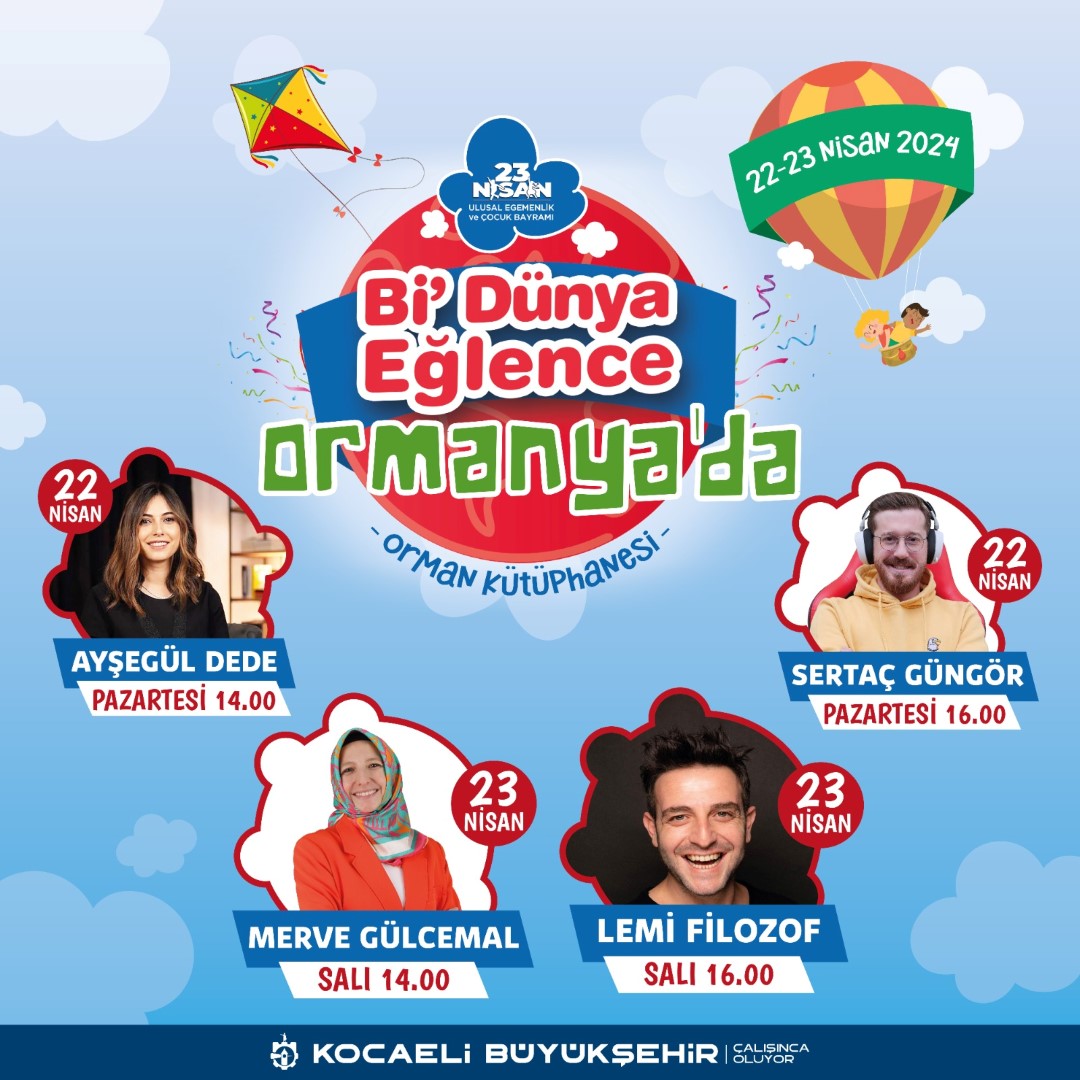 Kocaeli Büyükşehir Belediyesi, 23 Nisan Ulusal Egemenlik ve Çocuk Bayramı etkinlikleri kapsamında bu yıl da “Bi Dünya Eğlence” düzenleyecek. Ormanya’nın ev sahipliğindeki etkinlikler 22-23 Nisan tarihlerinde yapılacak. Çocuklar için Ormanya’da çevre ve doğa bilincine yönelik birbirinden renkli eğlence atölyeleri kurulacak. Kocaelili çocuklar iki gün boyunca atölye etkinliklerinin yanı sıra düzenlenecek konser ve sahne şovlarında 23 Nisan coşkusu yaşayacak.