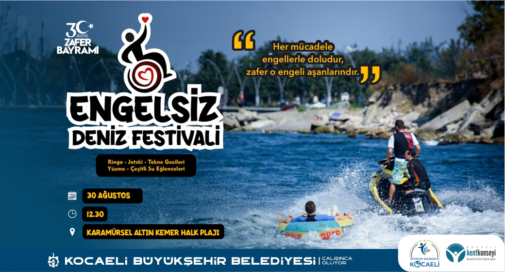 Kocaeli Büyükşehir Belediyesi ile Kent Konseyi birlikteliğinde 30 Ağustos Zafer Bayramı dolayısıyla 3. Engelsiz Deniz Festivali yapılacak. Karamürsel Altınkemer plajında gerçekleştirilecek festivalde engelli bireyler, profesyonel sporcular ve cankurtaranlar eşliğinde gönüllerince eğlenecek.