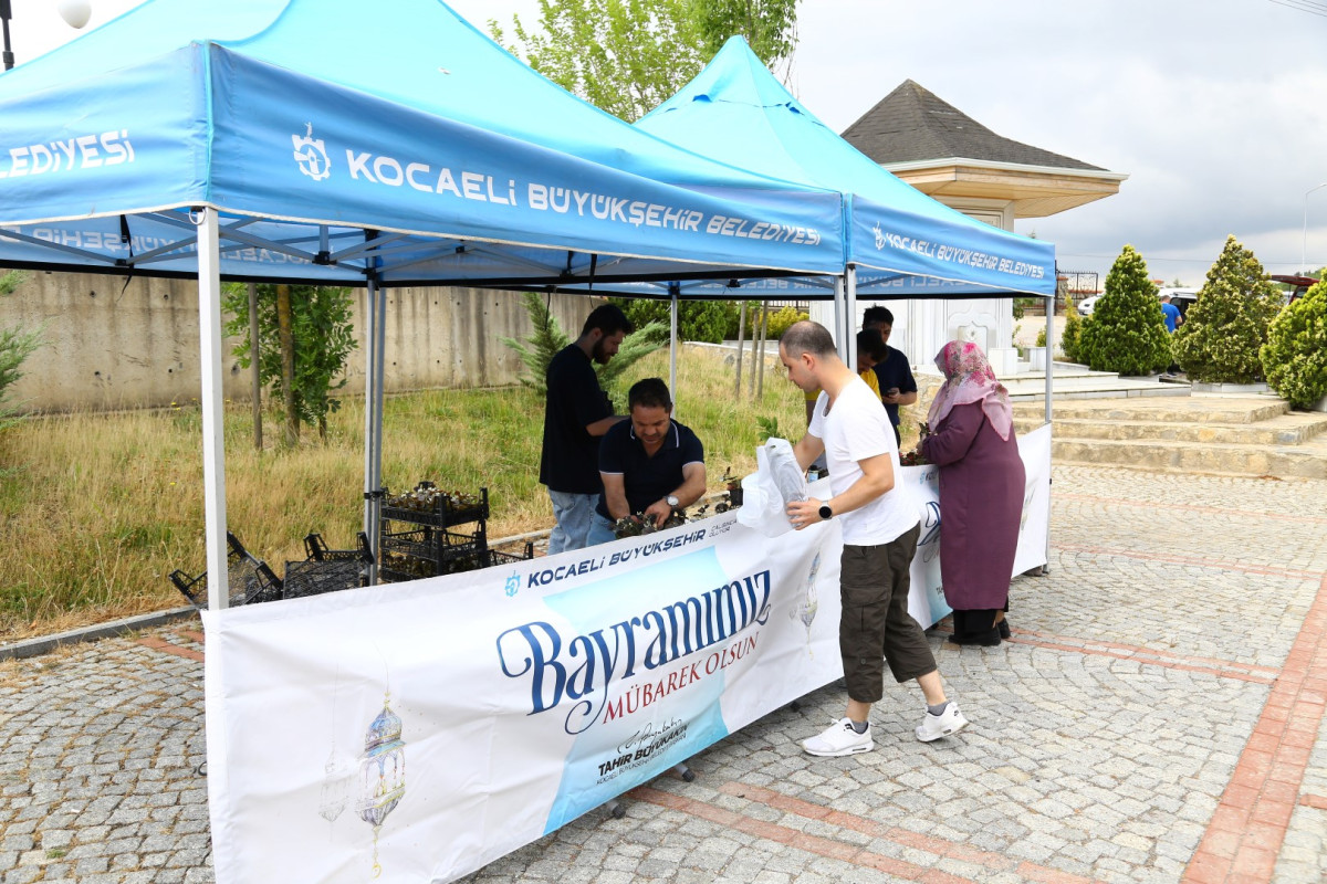 Kocaeli Büyükşehir Belediyesi arefe günü il genelindeki mezarlıkları ziyarete gelen vatandaşlara, 20 bin adet mevsimlik çiçek dağıttı.