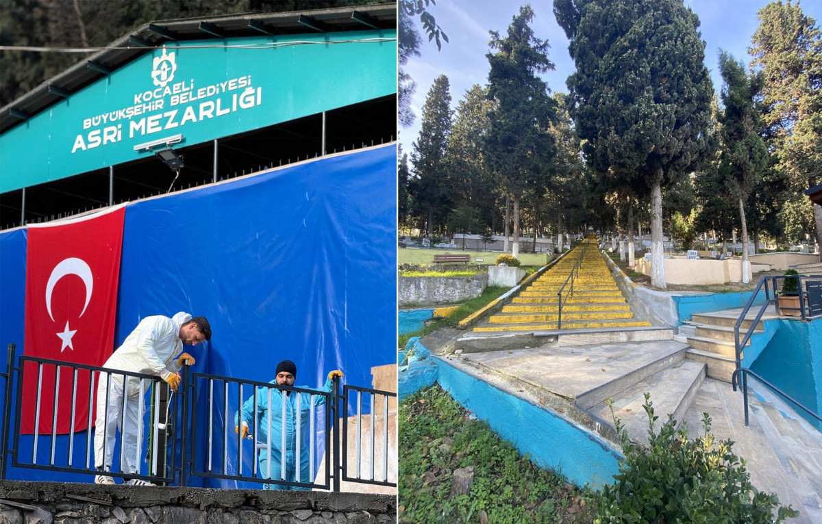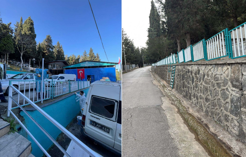 Kocaeli Büyükşehir Belediyesi, İzmit Asri Mezarlığı’nda bakım, onarım ve yenileme çalışmalarını aralıksız sürdürüyor. Mezarlıklar Müdürlüğü personelleri tarafından yürütülen çalışmalar kapsamında mezarlık içerisindeki idari binalar, duvarlar ve giriş alanlarında boyama işlemleri gerçekleştiriliyor. Mezarlık çevresindeki çitler yenilenerek boyanıyor. Yapılan çalışmalarla birlikte zamanla yıpranan alanlar elden geçirilirken, mezarlık daha estetik ve bakımlı bir görünüme kavuşuyor.