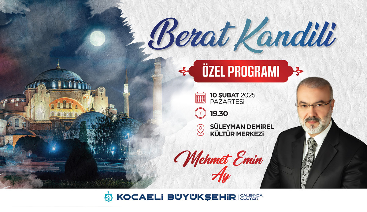 Kocaeli Büyükşehir Belediyesi, Berat Kandili’nde ilahiyatçı yazar Mehmet Emin Ay’ın konuk olacağı “Berat Kandili Özel Programı” düzenleyecek. 10 Şubat Pazartesi akşamı (yarın) SDKM Büyük Sahne’de gerçekleştirilecek olan program 19.30’da başlayacak. Programda ilahiyatçı yazar Mehmet Emin Ay; rahmet ve mağfiret iklimi, Ramazan-ı Şerif’in müjdecisi Berat Kandili’nin faziletini aktaracak. Ayrıca Kur’an Tilaveti, Hadis, Kıssa ve dualar okunacak.