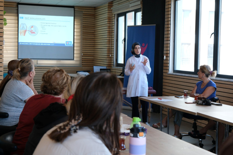 Kocaeli Büyükşehir Belediyesi, kadınların sağlık bilincini artırmaya yönelik çalışmalarına devam ediyor. Kadın ve Aile Hizmetleri Dairesi Başkanlığı bünyesinde hizmet veren Anne Şehir Merkezleri fizyoterapistlerinden Hatice Kübra Gür, düzenlenen seminerde üyelere diz sağlığı ve tedavi yöntemleri hakkında önemli bilgiler verdi.