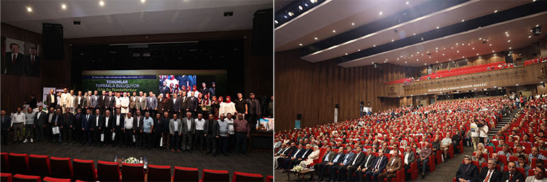 Büyükşehir Belediye Başkanı Tahir Büyükakın programda yaptığı konuşmada, 4,5 yılda 58 önemli tarımsal destekleme projesini hayata geçirdiklerini, üreticilere yaklaşık 450 milyon TL değerinde destek sağladıklarını söyledi. Bugün burada ekim ayı içerisinde, hibe akaryakıt, yem bitkisi tohumu ve sera yapımı projelerinin teslimini yapacaklarını belirten Başkan Büyükakın, “Bir ülke, bir şehir, bir organizasyonda ortak bir niyet etrafında birleşirlerse maksatlar bir olursa, yürekler aynı ritimde atarsa başarılı sonuçlar elde ediyoruz. Önemli olan maksat birliğidir. Türkiye Cumhuriyeti’nin 100. yılında, yeni yüzyılda büyük bir seferberliğin içindeyiz. Biz geleceğin büyük Türkiye’sini inşa edecek adımlarla yürüyoruz. Biz geçmişte, ilimle ve Anadolu insanının irfanıyla bunları başardık. Ve biz yeniden böyle bir şey yapmanın yegane namzetiyiz. Biz büyük bir medeniyetin mirasçılarıyız” diye konuştu.