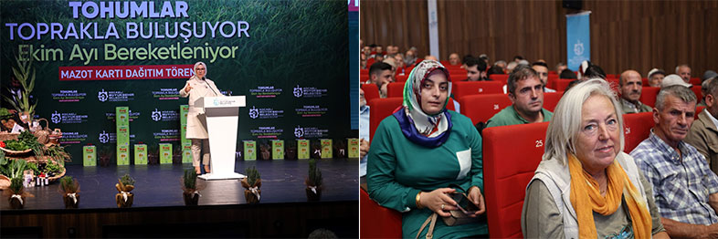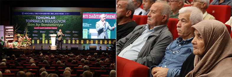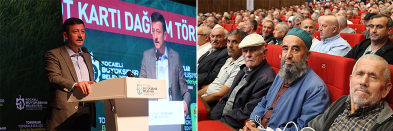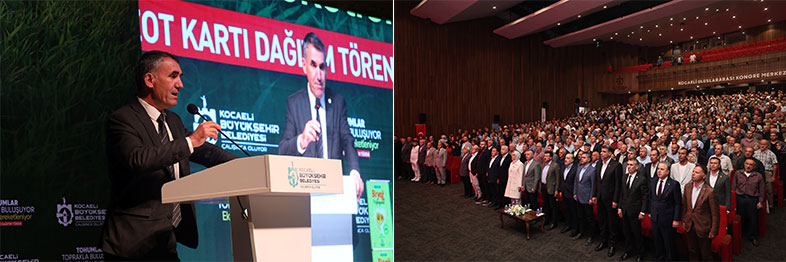 Kocaeli Büyükşehir Belediyesi, katma değeri yüksek ürünler yetiştirmeye teşvik ettiği çiftçilerin gelir düzeyini artırmaya, tarımsal kalkınmaya ve hayvancılığa yönelik desteklerini bu yıl da artırarak sürdürüyor. Bu kapsamda, yaklaşık 16.000 çiftçiye 2,7 milyon litre hibe mazot, 3.000 çiftçiye yüzde 50 hibeli 1.250 ton yem bitkisi tohumu ve 30 üreticiye modern sera desteği sağlanacak. Yaklaşık 156 milyon TL değerindeki desteklerden yararlanmak isteyen çiftlerin katılımı ile teslim töreni düzenlendi. Büyükşehir Belediyesi’nin “Tohumlar toprakla buluşuyor, ekim ayı bereketleniyor” sloganı ile Kocaeli Kongre Merkezi’nde düzenlediği törene Kocaeli Büyükşehir Belediye Başkanı Tahir Büyükakın, AK Parti Genel Başkan Yardımcısı Hamza Dağ, AK Parti Kocaeli Milletvekilleri Radiye Sezer Katırcıoğlu ve Veysal Tipioğlu, AK Parti Kocaeli İl Başkanı Şahin Talus, Genel Sekreter Balamir Gündoğdu, Genel Sekreter Yardımcısı Hasan Aydınlık, Trakya Birlik Yönetim Kurulu Başkanı Şafak Kırbiç, Muhtarlık İşleri Dairesi Başkanı Numan Balaban, belediye başkanları, ilçelerin ziraat odası başkanları, tarım ve hayvancılık faaliyetinde bulunan kooperatif ve birliklerin başkanları, muhtarlar ve çiftçiler katıldı. Saygı duruşu ve İstiklal Marşı’nın okunmasının ardından, Muhtarlık İşleri Dairesi Tarımsal Hizmetler Şube Müdürlüğü’nün tarımsal destek ve hizmetlerini anlatan kısa film gösterisi yapıldı.