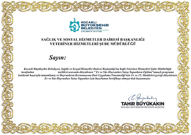 Kocaeli Büyükşehir Belediyesinin Tarım ve Orman Bakanlığı 1. Bölge Müdürlüğü, Kocaeli Şube Müdürlüğü ve İl Gıda, Tarım ve Hayvancılık Müdürlüğü işbirliği ile iki günlük ‘Pet-Shop Sertifika Eğitimi’ verilecek. Eğitimde Kedi ve Köpeklerin Petshoplarda Geçici Barındırma Koşulları ile Koruyucu Hekimlik anlatılacak.