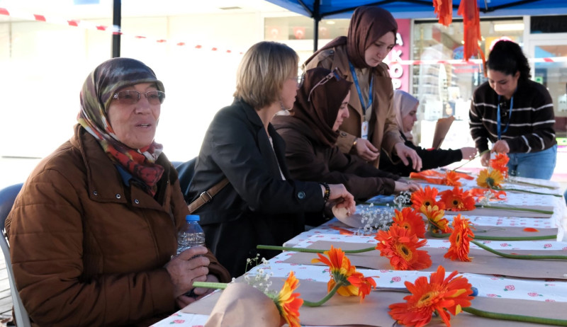 Atölyeye katılan kadınlar kendileri için, gençler anneleri ve sevgilileri için, erkekler ise eşleri için uzman ekip eşliğinde çiçek buketi hazırladı. Yapılan farkındalık etkinliği kapsamında kadına yönelik şiddetin karşısında dayanışma çiçekleri “şiddetsiz bir dünya” temasıyla anlamlandırıldı. Etkinlik kapsamında kadına yönelik şiddete ‘dur’ mesajı ise turuncu kurdeleler ile verildi.