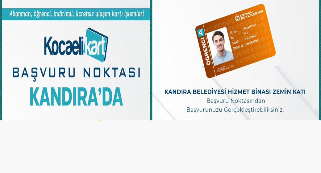 Vatandaşların her alanda hayatını kolaylaştırmak için yoğun çaba gösteren Kocaeli Büyükşehir Belediyesi, ulaşımda artan “Kocaelikart” taleplerine kalıcı çözümler getiriyor. Bu bağlamda yerinde hizmeti amaçlayan Ulaşım Dairesi Başkanlığı, seyahat kartları ofislerinin bir yenisini Kandıra ilçesinde ekledi. Kandıra Belediyesi Hizmet Binası zemin katında kurulan seyahat kartları ofisi 27 Aralık Çarşamba günü (yarın) itibariyle 08.30-17.30 saatleri arasında hizmet vermeye başlayacak.