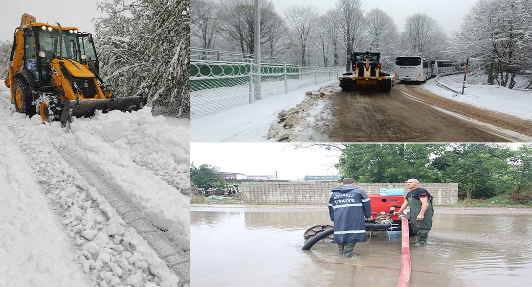 Kocaeli Valiliği’ne bağlı AFAD tarafından Meteorolojiden alınan bilgiye göre hafta sonunda sağanak yağış ve fırtına uyarısı yapılmıştı. AFAD’ın uyarısının ardından Kocaeli Büyükşehir Belediyesi ve İSU Genel Müdürlüğü ekipleri teyakkuza geçmişti. Soğuk ve yağışlı havanın etkisini göstermesiyle birlikte Kartepe ve Umuttepe’ye de ilk kar tanelerinin düşmesiyle Büyükşehir’e bağlı İtfaiye, Fen İşleri, Park ve Bahçeler, Zabıta ve İSU ekipleri, vatandaşların olumsuz etkilenmemesi ve yolların açık tutulması için 7/24 görev başında mücadele ediyor. Yağış öncesinde 12 ilçede yağmursuyu hatları, mazgal ve ızgara temizliklerini yapan Büyükşehir ve İSU ekipleri, motopomp ve kurtarma araçlarıyla da olumsuzluk yaşanan bölgelere müdahale ediyor. Olası bir su baskınında vatandaşların 112 ve 153 çağrı merkezlerine haber vermesi yeterli oluyor.