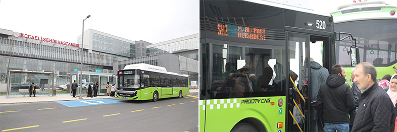 Kocaeli Büyükşehir Belediyesi, kent sakinlerine kolay ulaşım imkânı sağlamak için yaptığı çalışmalara devam ediyor. Kocaeli Şehir Hastanesi’nin hasta kabulüne başlamasıyla birlikte önlemlerini alan Büyükşehir, yeni hatlar oluştururken mevcut hatların bazılarını Şehir Hastanesi’ne hizmet verecek şekilde dönüştürdü. Kocaelililer hem Şehir Hastanesi’nden hem de oluşturulan toplu ulaşım ağından memnun. Bir yandan hızlı ve konforlu araçlarla ulaşım imkânına sahip olan kent sakinleri, diğer yandan modern yüzüyle Şehir Hastanesi’nden faydalanma imkânı buluyor.