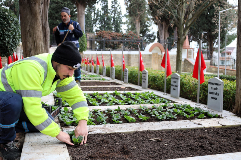 Çalışmalar kapsamında mevsim şartları nedeniyle eskimiş ve solmuş çiçekler özenle sökülerek alandan kaldırıldı. Toprak hazırlığının ardından şehitlik alanlarına mevsime uygun yeni çiçekler dikildi.