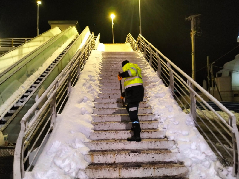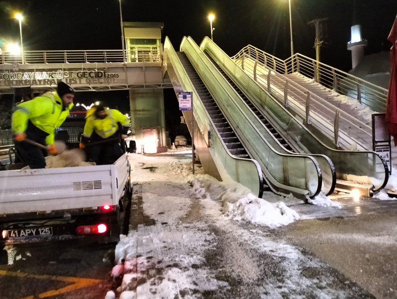 Kocaeli Büyükşehir Belediyesi Yol ve Bakım Daire Başkanlığına bağlı Yol Bakım Timi ve A Takımı ekiplerinden oluşan Karla Mücadele Timi, kar yağışı ve sonrasında tüm şehirde herhangi bir olumsuzluk yaşanmaması adına çalışmalarına devam ediyor. Ekipler yaya kaldırımları, üstgeçitler, ibadethane önleri, sağlık kuruluşları çevreleri ve vatandaşların yoğun olduğu bölgelerde çalışmalarına aralıksız devam ediyor.