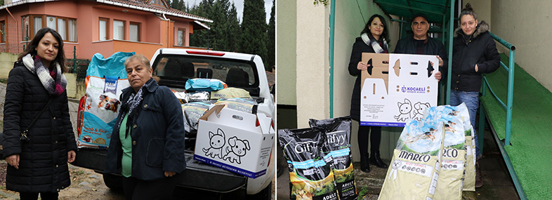 Kocaeli’nde faaliyet gösteren derneklere 500 kilo köpek maması ile 400 kilo kedi maması dağıtıldı. Kocaeli Hayvan Hakları Derneği (KOCAELİDER) Başkanı Selama Pilatin Pek, Gölcük Hayvan Hakları ve Aktivistleri Derneği (GÖLVİST) Başkanı Gülçin Taşkın, Kocaeli Doğa ve Hayvan Dostları Derneği (KOHAYDER ) Başkanı Gonca Çelik, Kocaeli Doğa ve Hayvan Hakları Savunucuları Derneği (KOHSAVDER) Başkanı Tülay Çetin ve Can Dostları Derneği Başkanı Sibel Erdem’e Büyükşehir Belediyesi tarafından hazırlatılan Köpek Taşıma Kutuları ve mamalar verildi.
