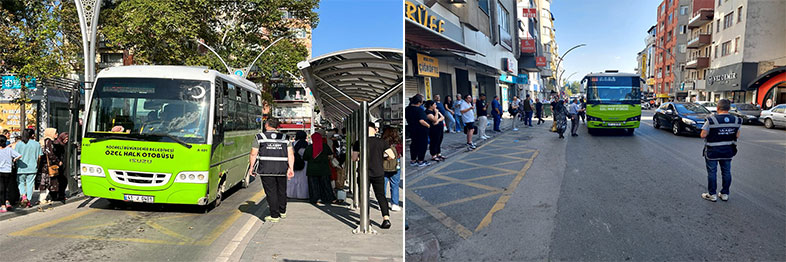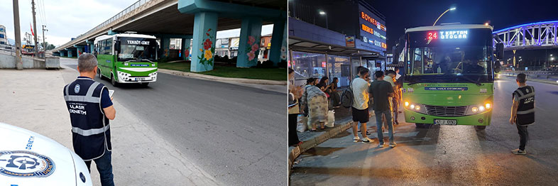 Kocaeli Büyükşehir Belediyesi Ulaşım Dairesi Başkanlığı’na bağlı ekipler, ilçeler arası yolcu taşıma araçlarında ve şehir içi özel halk otobüslerinde periyodik denetimler gerçekleştiriyor. Ulaşım Denetim ekipleri, belirlenen duraklarda sürücü personelin kıyafetlerini, sefer saatlerine uygun hareket etmelerini, araçların yolcu taşıma sayılarını, duraktan yolcu alınırken gösterilen önemi ve araçların temizlik kontrolleri gibi yönetmelikte uyulması gereken kuralları titizlikte denetliyor.