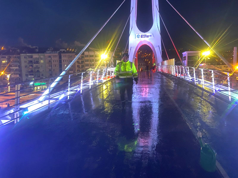 Büyükşehir’den üst geçitlere buzlanma müdahalesi
