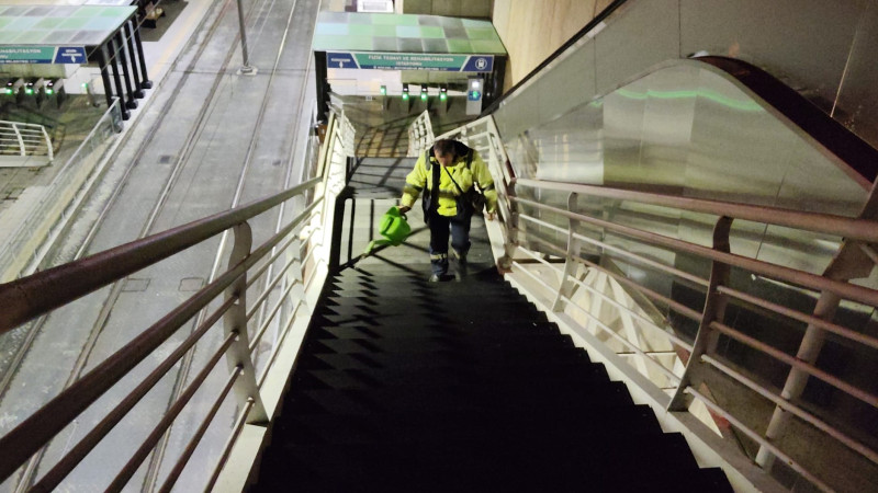 Büyükşehir Park ve Bahçeler Dairesi Başkanlığı’na bağlı ekipler, soğuk kış günlerinde don ve buzlanmaya karşı önleyici tedbirleri aksatmadan sürdürüyor. Bu kapsamda sıvı formda uygulanan özel bir kimyasal solüsyonla üst geçitleri daha güvenli hale getiriyor. Kolay uygulanabilen bu solüsyon, hem işçilik maliyetini hem de zaman kaybını önemli ölçüde azaltıyor. Su bazlı ve doymuş mineral karışımından oluşan solüsyon, yanıcı özelliğe sahip olmamasıyla dikkat çekiyor. Antibakteriyel yapıda olan ve glikol ile türevlerini içermeyen ürün, uçucu aktif maddeler barındırmadığı için uzun süre etkisini koruyor.