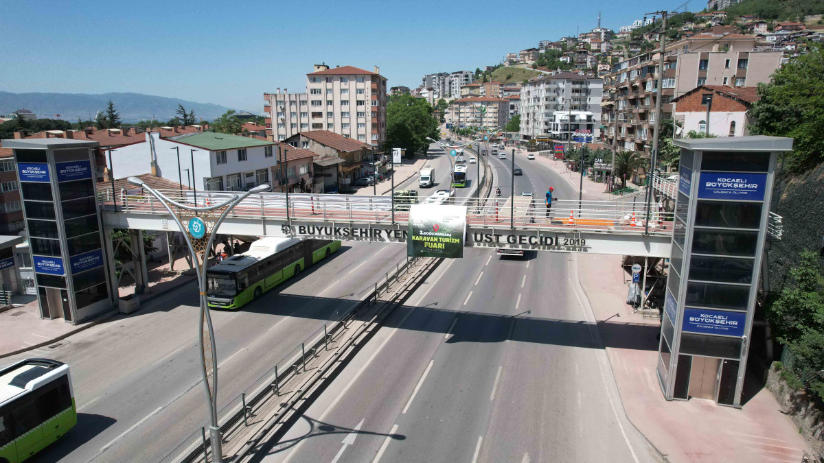 Büyükşehir Belediyesi, İzmit Yenidoğan üst geçidinin zemin kaplamasını değiştirerek, yayaların daha güvenli ve konforlu geçişlerini sağladı