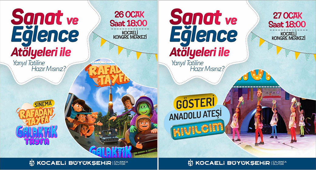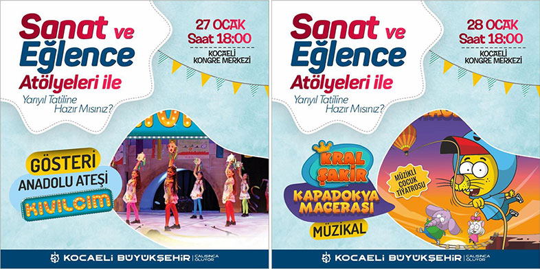 Kocaeli Büyükşehir Belediyesi, 22 Ocak-2 Şubat tarihleri arasında gerçekleştirilecek yarıyıl tatilinin ilk bölümünde çocuklar için sanat ve eğlence atölyeleri düzenleyecek.