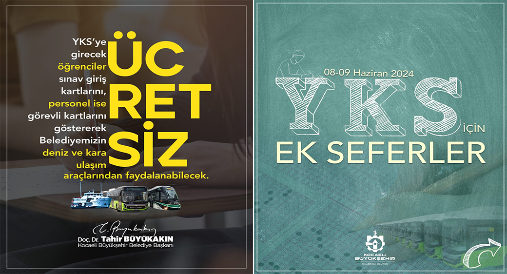 08-09 Haziran günlerinde Türkiye’de Yükseköğretim Kurumlar Sınavı’nda 2 milyonda fazla öğrenci ter dökecek. Büyükşehir Belediyesi, Kocaeli’de YKS’ye girecek 120 bin 195 öğrenci ve görevli personel için ek seferler düzenleyecek. Ayrıca öğrenciler ve görevliler için ücretsiz ulaşım imkanı sağlanacak.