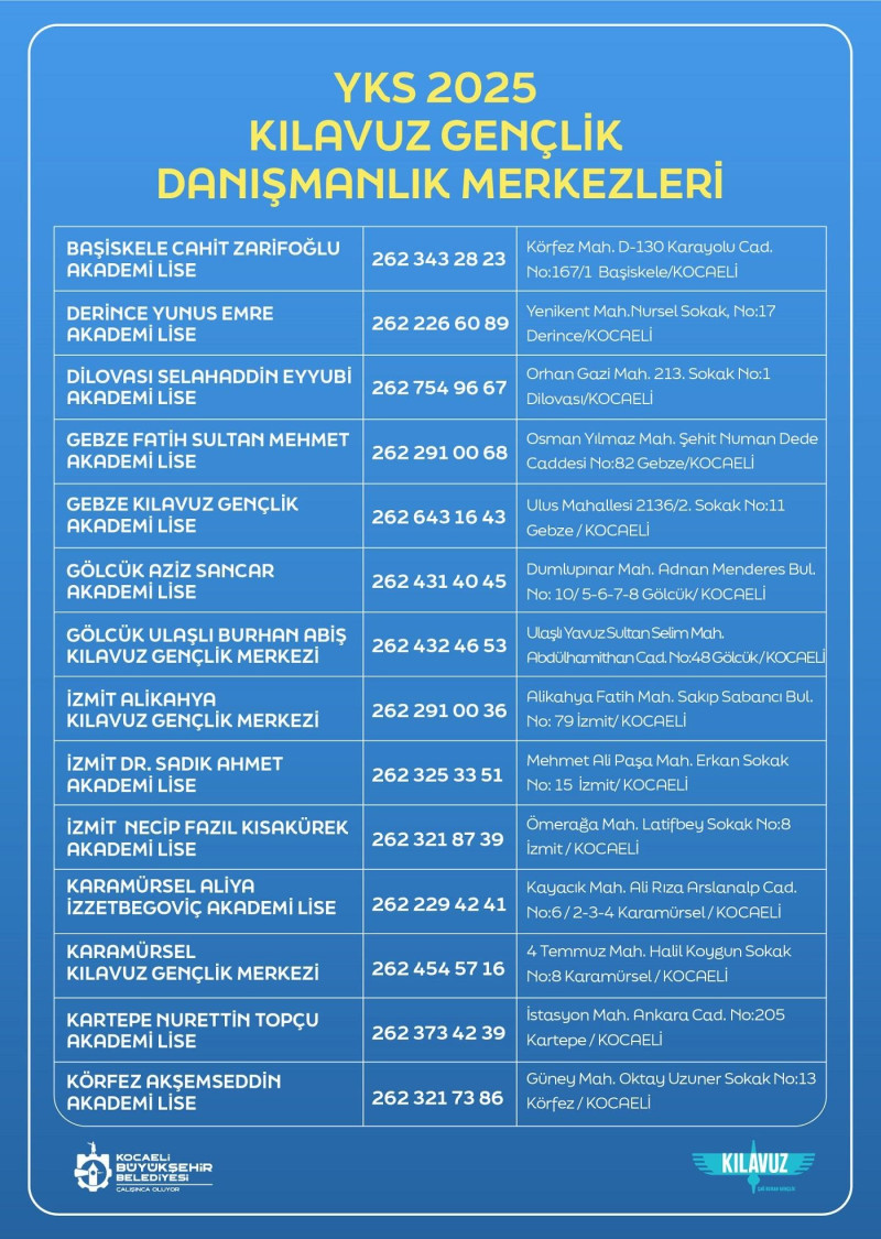 Kocaeli Büyükşehir Belediyesi, YKS’ye giren binlerce öğrencinin en doğru kararı vermesi için bu yıl da "kılavuz" rolünü üstleniyor. Öğrencilerin gelecek hedeflerine giden yolda en önemli dönemeçlerden biri olan tercih sürecinde, uzman rehberler eşliğinde ücretsiz danışmanlık hizmeti sunuyor.