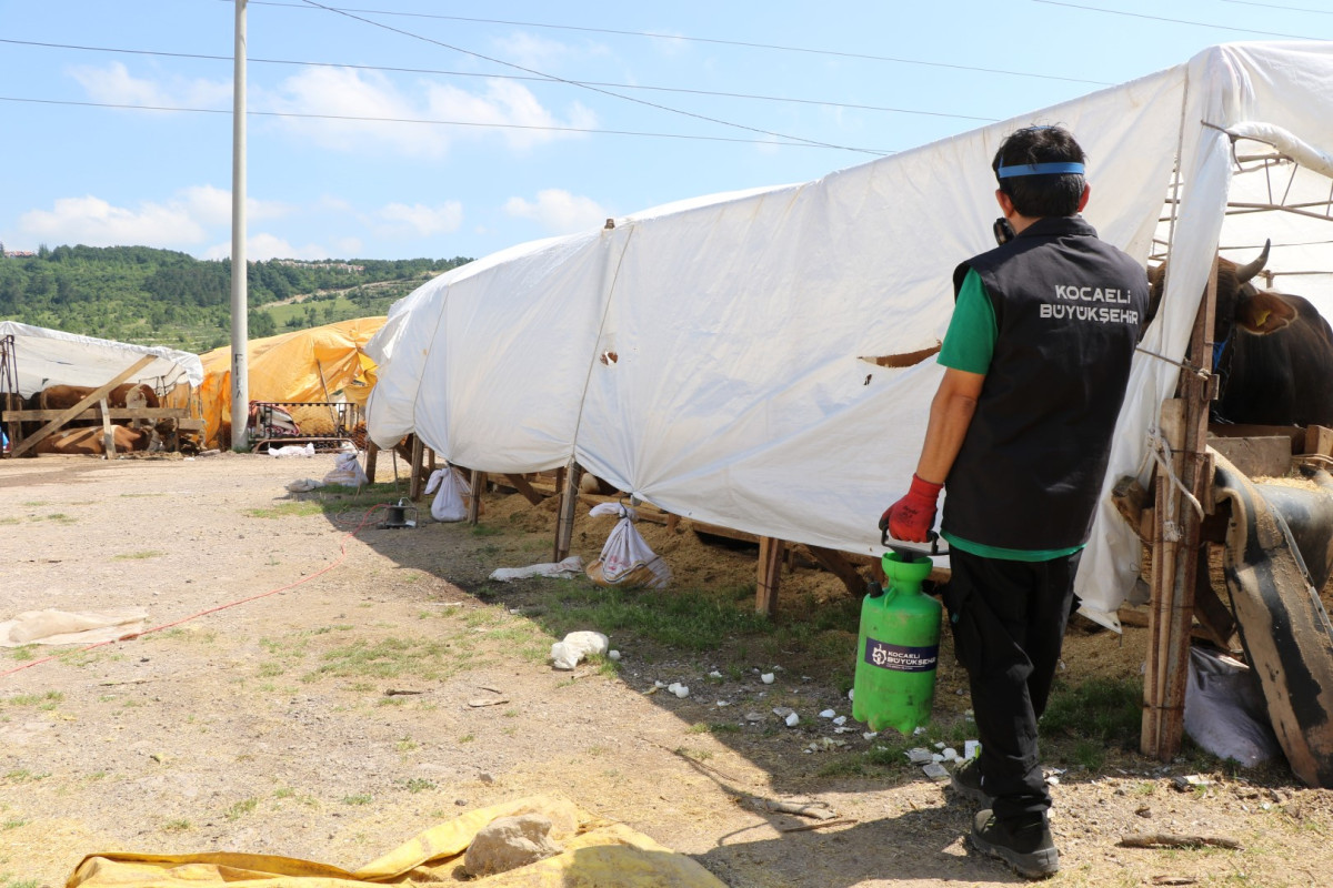 İnsan sağlığına değer veren Kocaeli Büyükşehir Belediyesi, Kurban Bayramı öncesinde kurbanlık alanlarda ilaçlama yapıyor