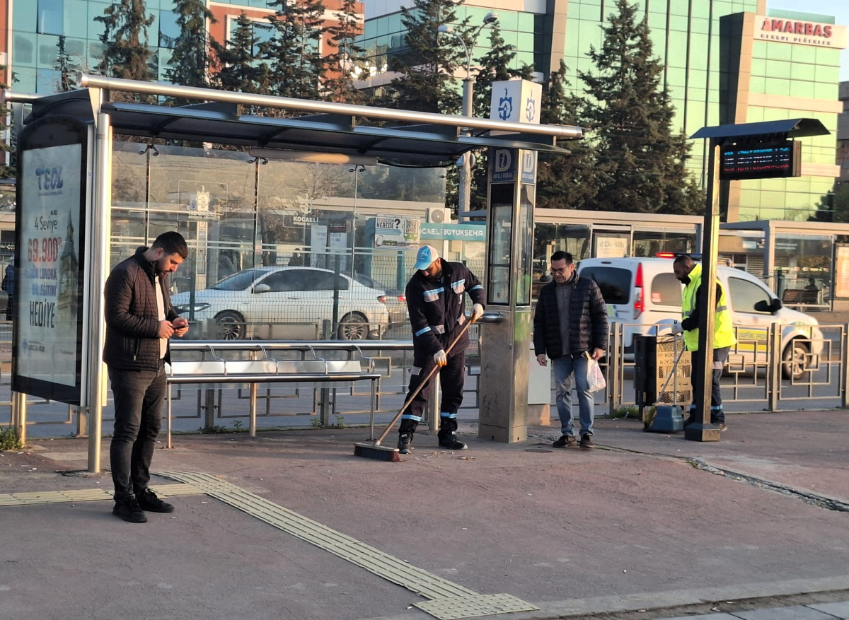 Kocaeli Büyükşehir Belediyesi, kent genelindeki toplu taşıma duraklarında düzenli olarak temizlik ve bakım çalışmaları gerçekleştirerek, vatandaşların daha hijyenik ve konforlu alanlarda toplu taşıma araçlarını beklemesini sağlıyor.